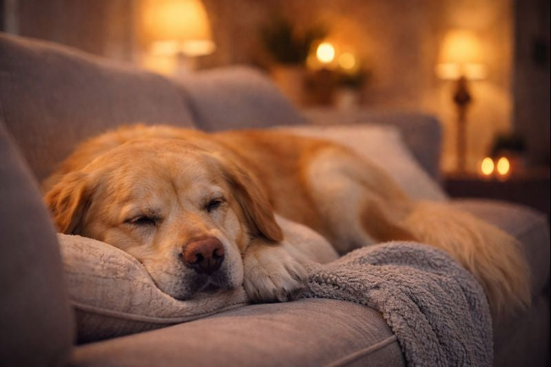 We create simple, gentle calming support designed to help dogs feel more at ease during noisy nights, restless evenings, travel, and everyday stressful situations.